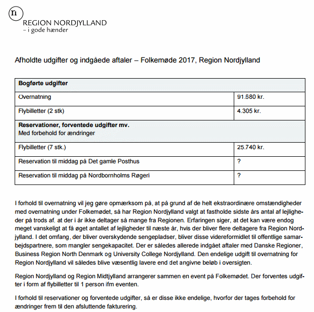 Sådan lyder det blandt andet fra Region Nordjylland i forbindelse med, at Folkets.dk har opnået aktindsigt i de udgifter, som regionen allerede havde afholdt til Folkemødet 2017 en måneds tid inden, at den politiske festival gik i gang.