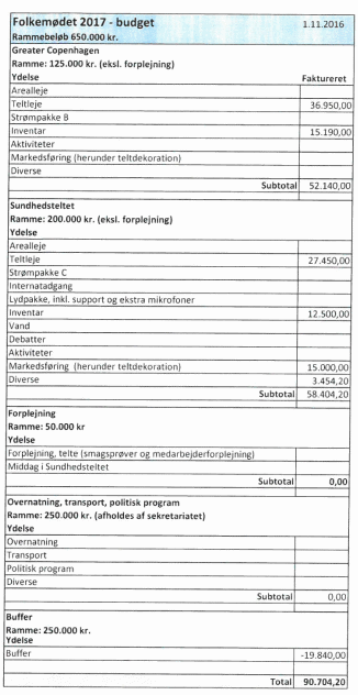 Ifølge de fremsendte dokumenter, lyder det samlede budget på 650.000 kroner eksklusiv moms – eller 812.500 kroner