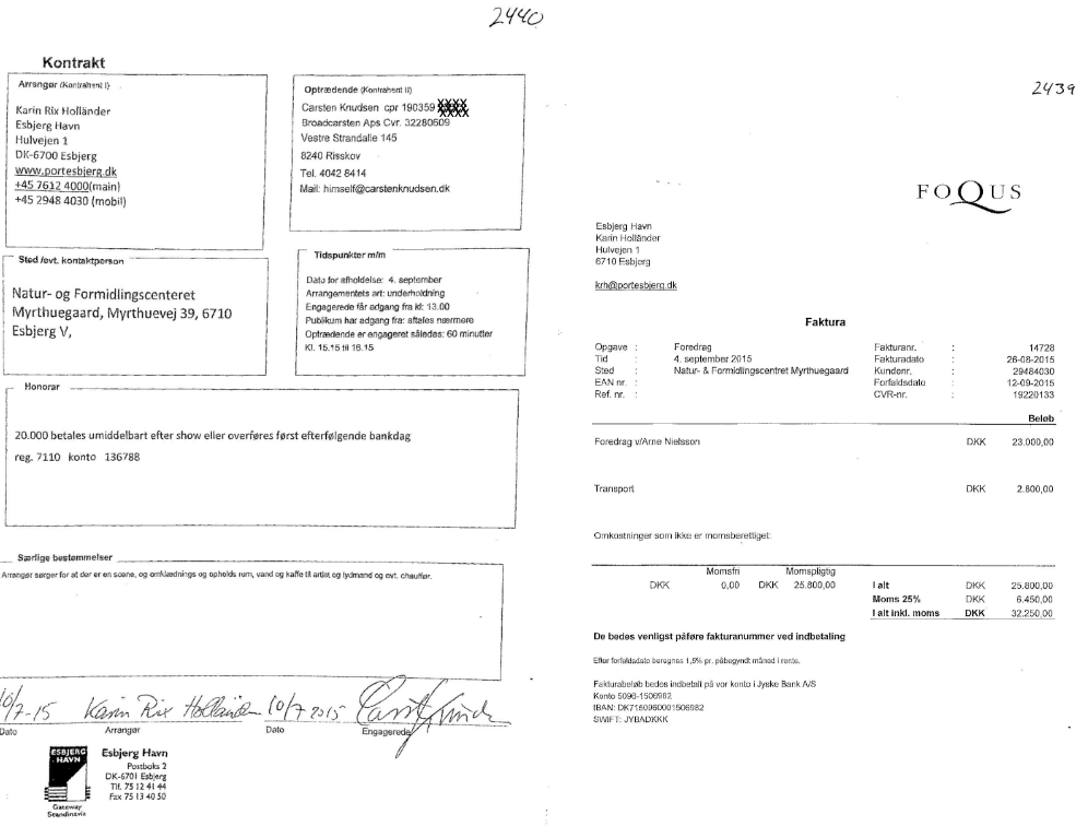 Her havde man inviteret Carsten Knudsen, som er kendt fra De Nattergale, hvilket han modtog 20.000 kroner for. En betaling der dog var væsentligt mindre, end hvad Arne Nielsson kunne sætte ind på kontoen, da han også den 4. september 2015 holdt et foredrag.