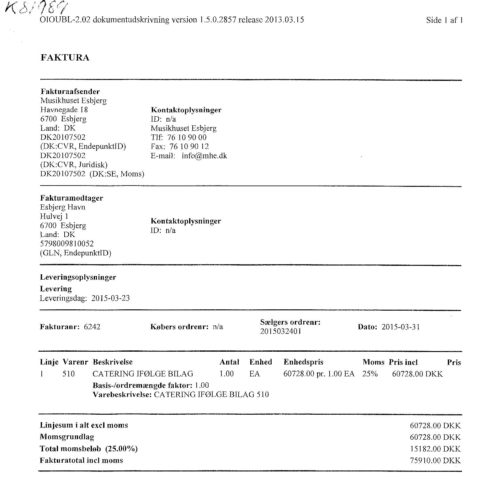 Esbjerg Havn er også gode kunder, når det handler om at gøre brug af lokale cateringfirmaer. Således lød regningen på 75.910 kroner, da man i marts 2015 købte ind hos Esbjerg Musikhus.