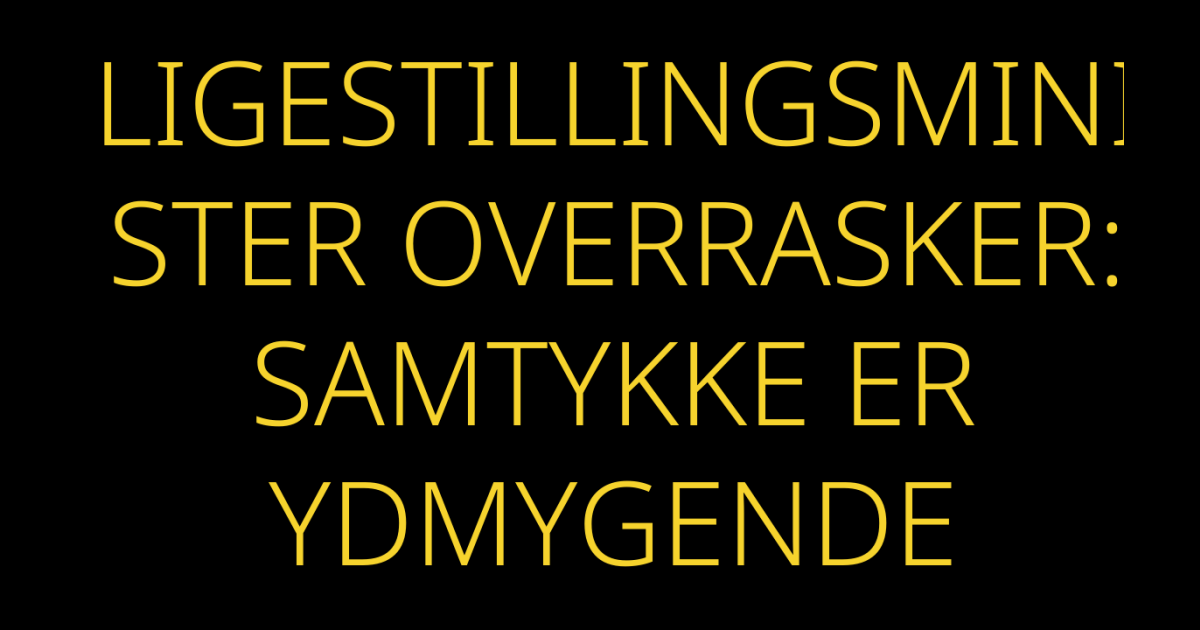 Ligestillingsminister overrasker: Samtykke er ydmygende