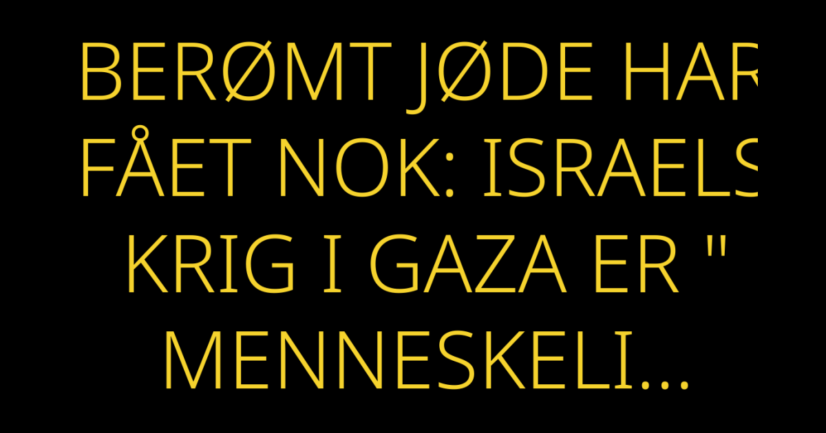 Berømt jøde har fået nok: Israels krig i Gaza er "menneskelig kødkværn"